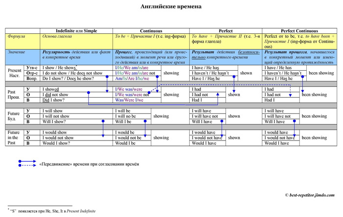 Вот мы легко и быстро прошлись по основным английским формам времени, которые нужно не только знать, но и понимать. Если вы запомнили, в каких случаях они используются и как образуются, остальное – перечисление частных случаев их употребления. Судите сами.