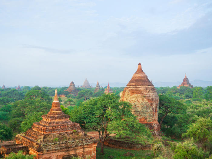 В средневековом Багане сохранилось больше трех тысяч объектов; его пейзаж - самая узнаваемая туристическая открытка Мьянмы.