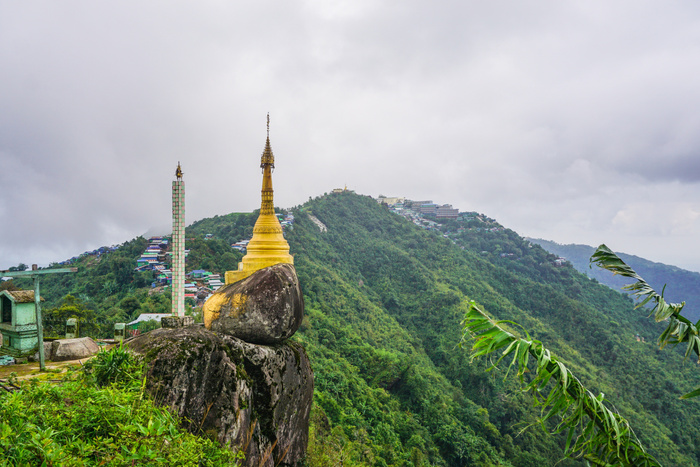 Главный храм в Лойко, столице самого маленького штата Мьянмы - Кая, называется Таунг Кве Зеди. Название можно перевести как "Ступа на Горбатой Горе". Храм построили на вершине карстового выступа рельефа и сверху можно увидеть весь город как на ладони.
