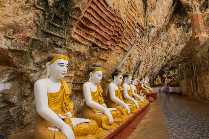 Практически любая природная пещера, которых в Мьянме тоже не мало, автоматом становится буддийским храмом. Пещерным. На фото вестибюль пещерного храма Ко Гун в штате Кайин.
