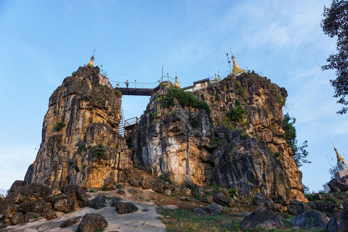 В штате Мон очень любят большие, нет очень большие валуны. Но здесь нельзя просто взять и не водрузить на такой валун буддийскую ступу, и не окутав, при этом, место мистической легендой. Вот так валун становится местом поклонения, а территория вокруг него - пагодой. Этот называется Чайтийо Лэй Пайя, пайя собственно переводится как "пагода".