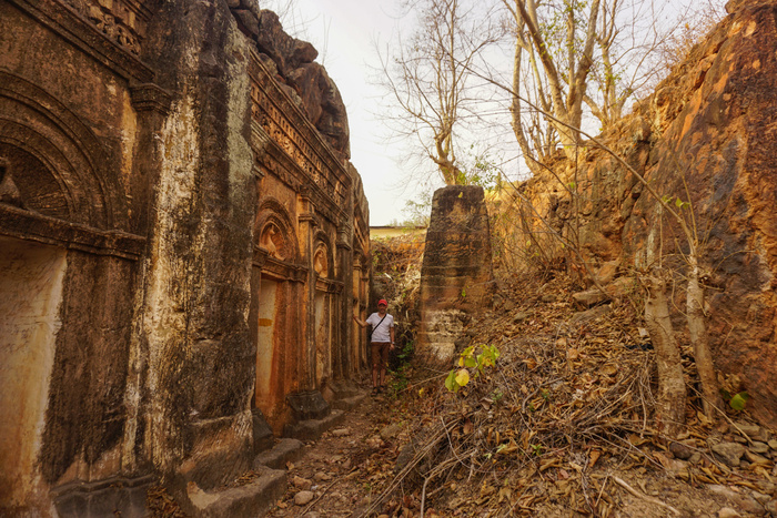 Человек на фоне остатков еще одного монастыря колониального периода в Пхо Вин Даунге надеется, что пост вам зайдет.