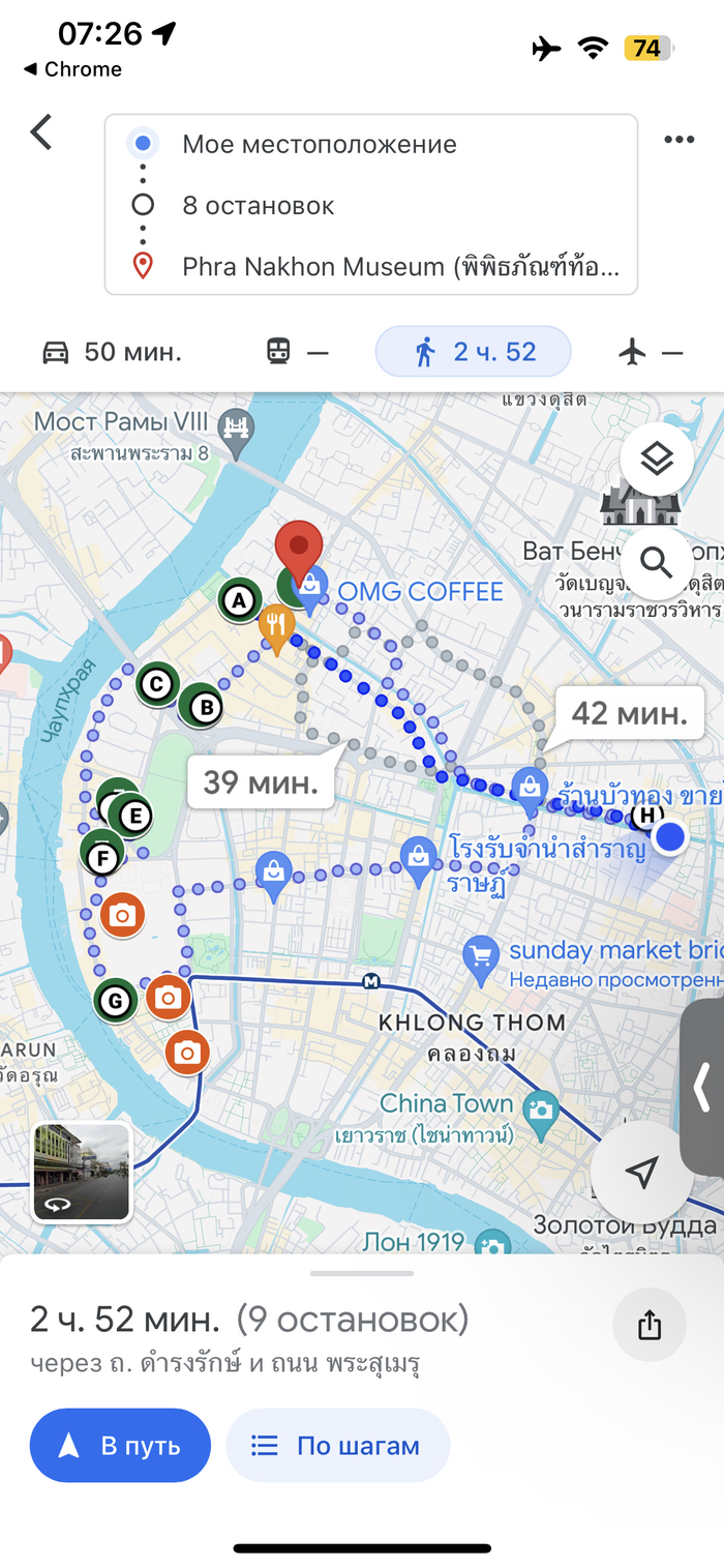 А вот на следующий день я уже выбрала один из пешеходных маршрутов по Бангкоку. Благо он начинался в получасе от моего отеля.