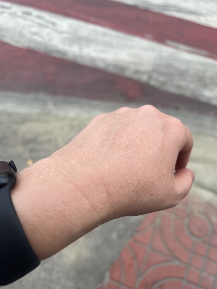 Кстати, даже утром было очень жарко! Вот так моя рука выглядела через 10 минут прогулки и да, это не солнечный ожог, это покраснение от температуры.