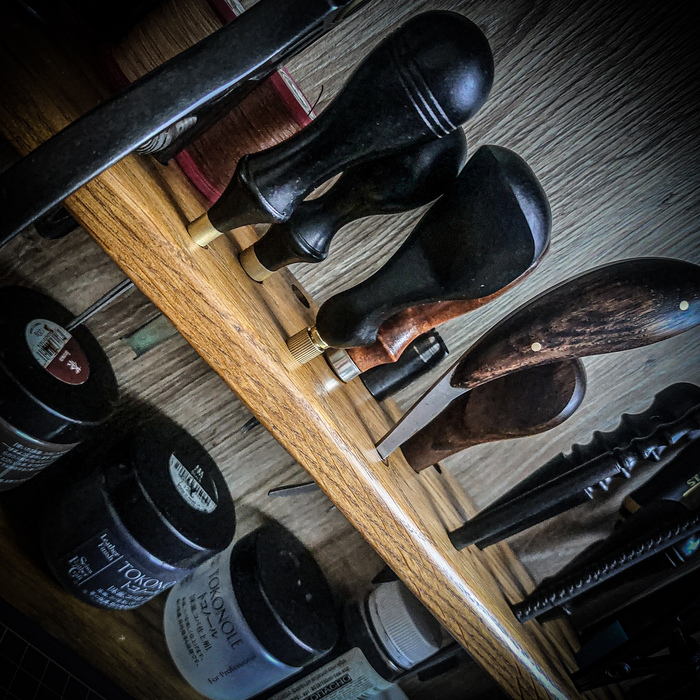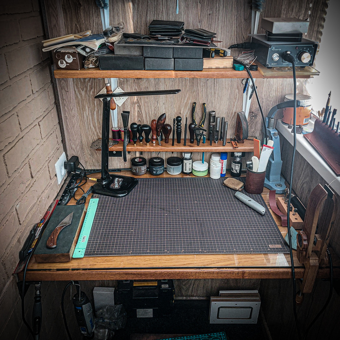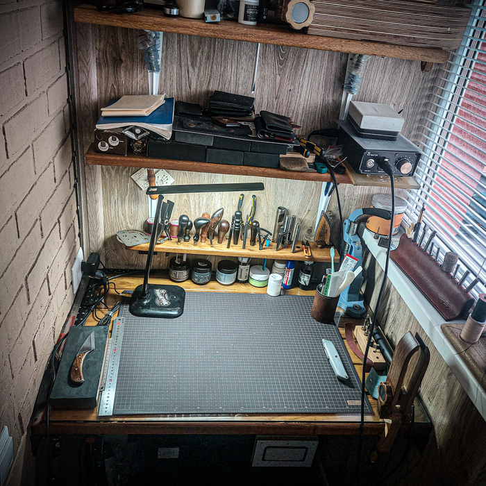 Решил немного навести "марафет" у себя в мастерской, т. к. во время работы все покрывается слоем пыли, и заодно пофоткать, и рассказать немного про мои инструменты для работы с кожей.