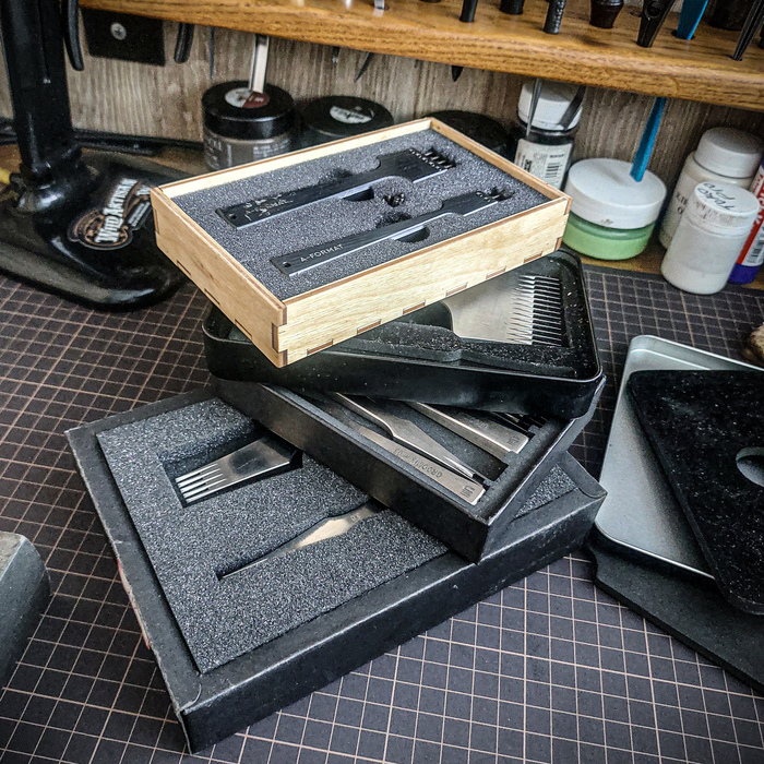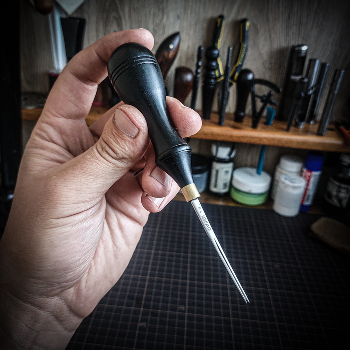 Кромкорез-предназначен для того, чтобы закруглить края кожи, срезая фаску с обеих сторон. Их у меня 3 шт. Отличаются шириной канавки.
