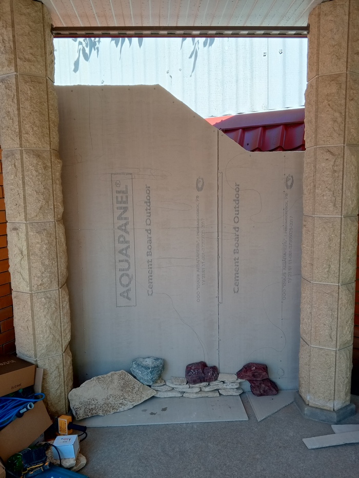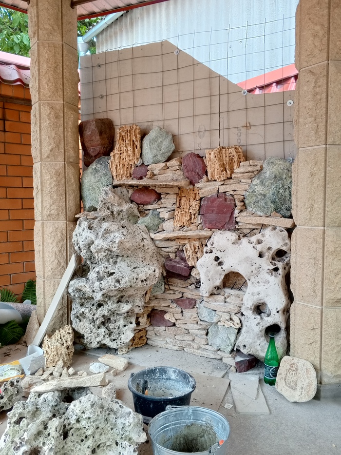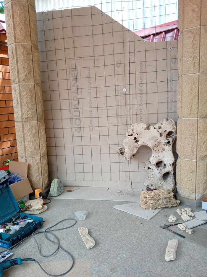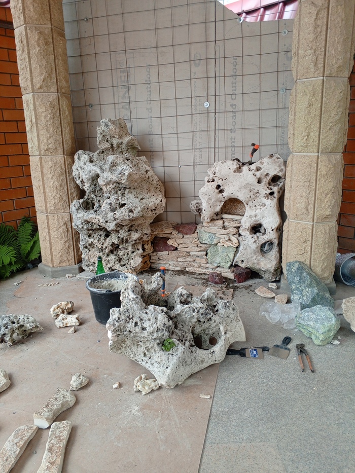 Дано: Угол , где будет стоять оборудование системы автоматического полива и давняя мечта заказчика о водопаде на участке.
