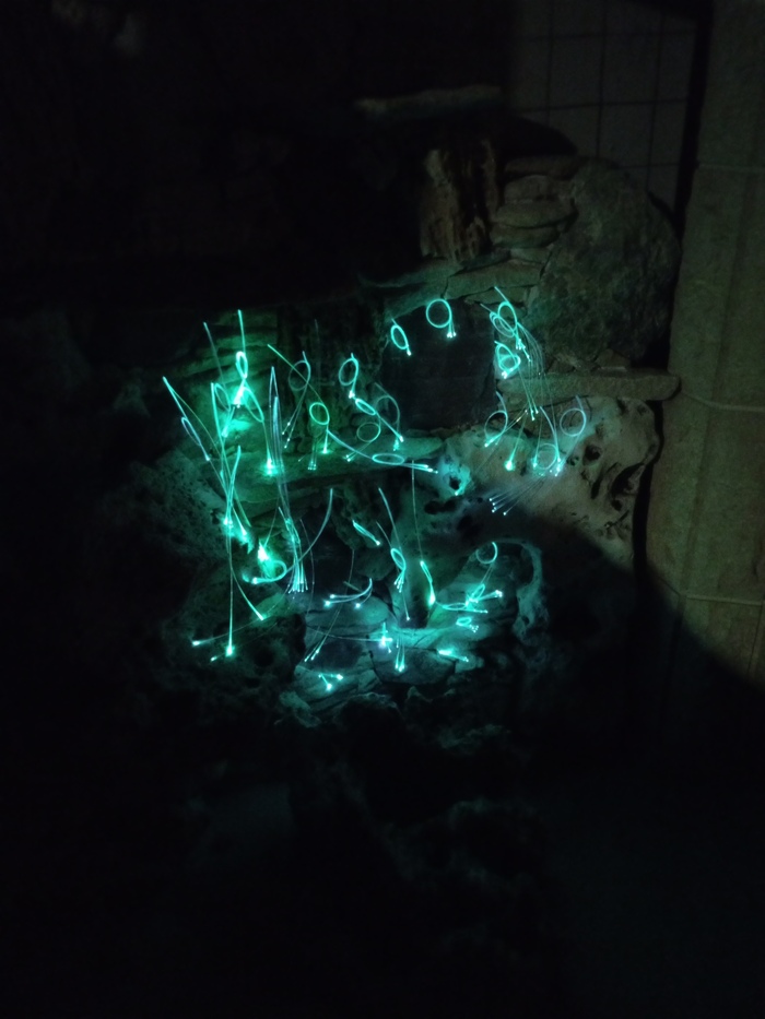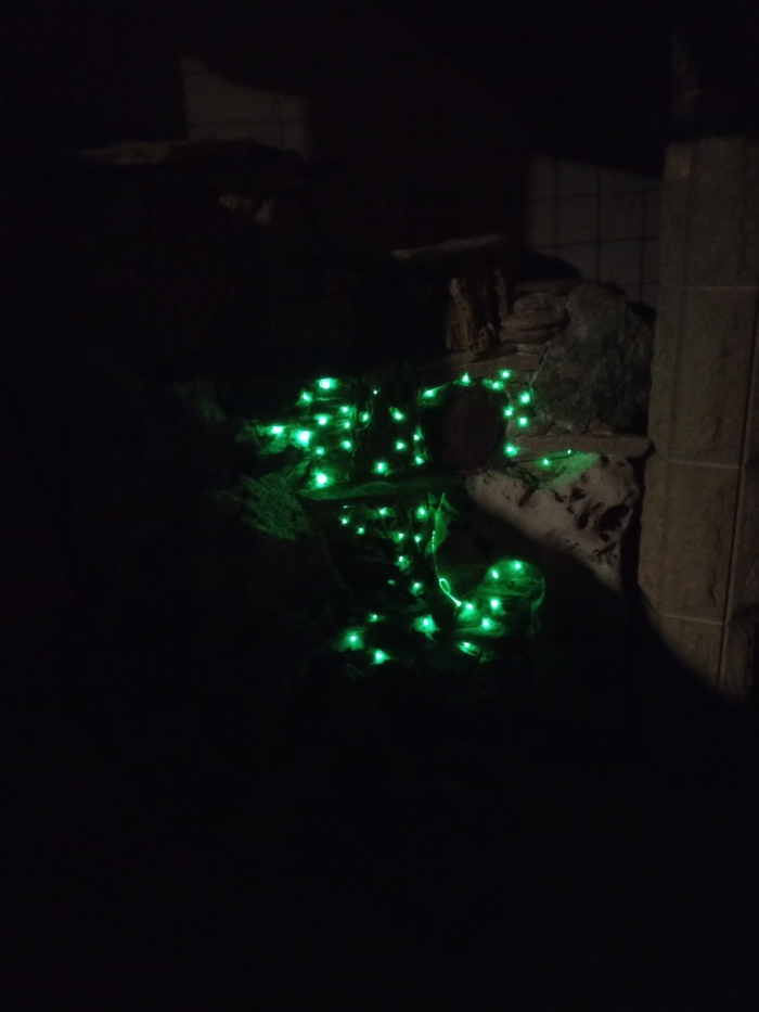 В процессе работы пришла идея подсветить "водопад" подсветкой типа "звездное небо"