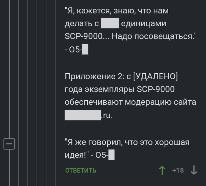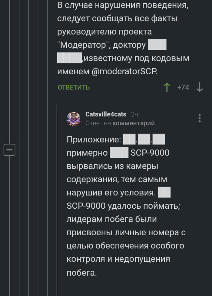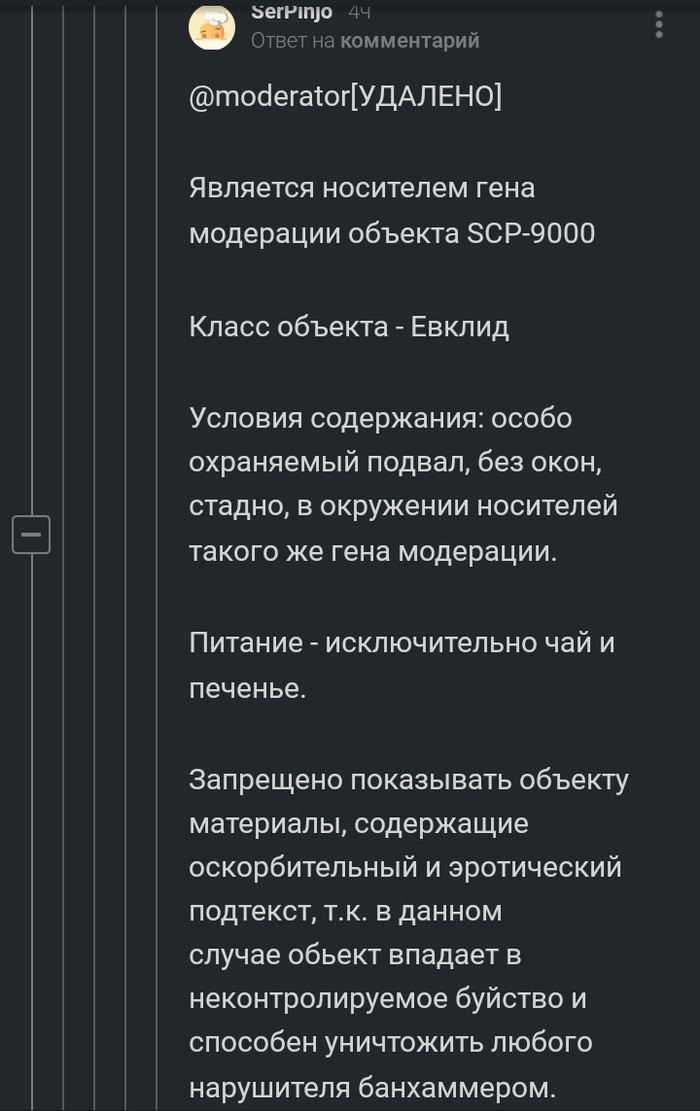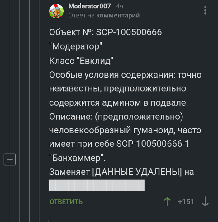 114 BigLebowsky 5 лет назад SCP-100500666 #comment_159279851 Показать полностью 10 Скриншот Комментарии на Пикабу Модератор SCP Длиннопост