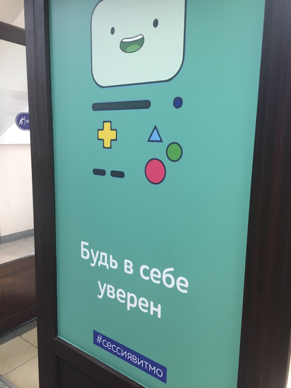 1389 Bigcall 9 лет назад Универ снова поднимает настроение перед сессией Вот такие вот позитивные плакаты появились в нашем университете перед сессией. Зимой висели плакаты по "Звездным войнам", сейчас по "времени приключений". Интересно, что будет дальше? Показать полностью 5 Сессия Универ ИТМО Adventure Time Длиннопост