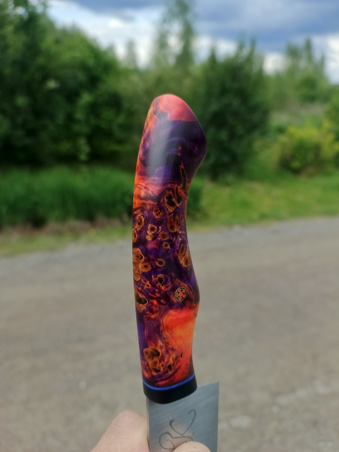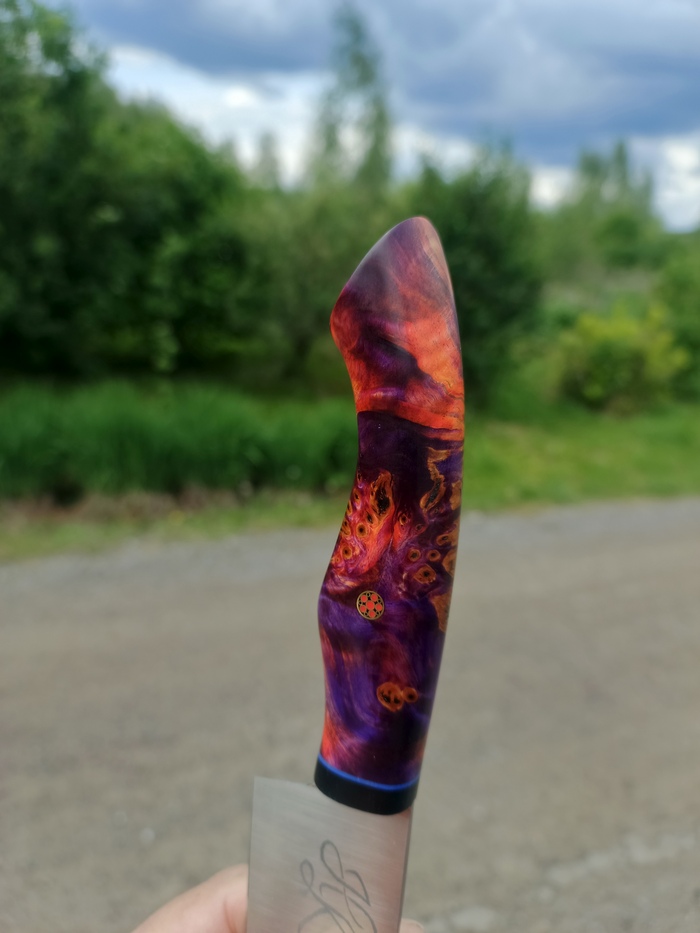 Давно не работал с деревом на рукояти и получил большое удовольствие при обработке. Всяко лучше, чем с микартой.