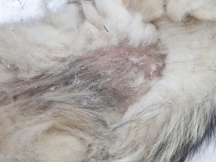 Доброе время суток, сила пикабу, есть ли тут специалисты ветеринары или кинологи? Ситуация следующая есть кобель маламута Рэй 8 лет настроение хорошее у него, анализы в норме (сдавали перед новым годом), аппетит есть. Рацион каша (сечка, геркулес, ячка в разных пропорциях) на бульоне основу составляет когда рыба потасу, когда куриные головы, говяжьи суповые кости, костный фарш всегда по разному с добавлением моркови и капусты и масла растительного . Раньше собакой занимался я когда жил с родителями и как мог расчёсывал его хотя признаться это было очень трудно, он не любит это дело, приходилось идти на хитрости но переехал в город и пёс остался за городом с родителями они его обожают, но у отца не всегда есть время его расчёсывать и шерсть посволялась но сваляные куски отходят легко, а вот на задней лапе в области задницы образовалась такая проплешина. Что это может быть? Нехватка витаминов или болезнь? Посоветуйте что нибудь. сводить к ветеринару пока возможности нет.