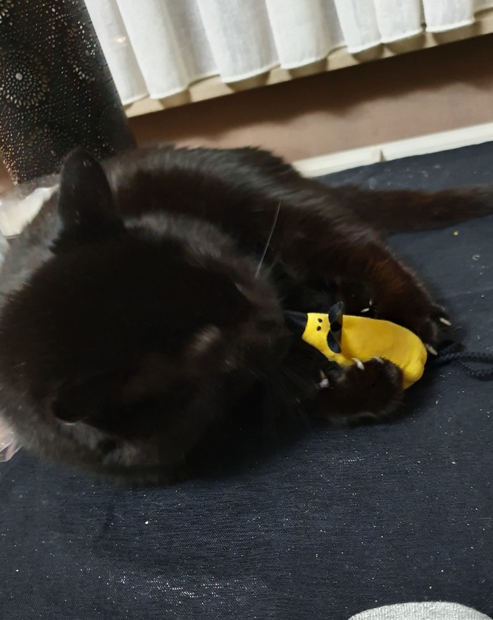 В первую очередь я открыла подарочки для моих питомцев. После небольшой драки (собакен очень жадный и отбирает всё у кота) они остались очень довольны)))