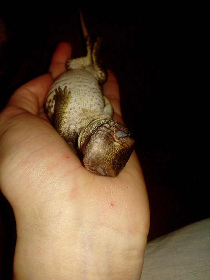 В кормлении с желтопузиком проблем нет. Совсем. Он ест и насекомых, и моллюсков, и грызунов, и фрукты. Однако, следует соблюдать некоторую диету для него. Грызуны - пища тяжёлая. Давать можно раз-два в месяц взрослую мышь. Виноградные улитки, слизни, сверчки, зофобас, мраморные или мадагаскарские тараканы, мучной червь, бананы, виноград, абрикосы, сливы, красные яблоки - вот основное меню глухаря. Нельзя давать цитрусовые, кислые и вяжущие фрукты. Можно предлагать куриные сердца, но на белок животного происхождения лучше не налегать. Очень занятно наблюдать, как глухарь ловит сверчков и тараканов; тяжёлый ящер в броне проявляет завидную прыть в погоне за добычей :)