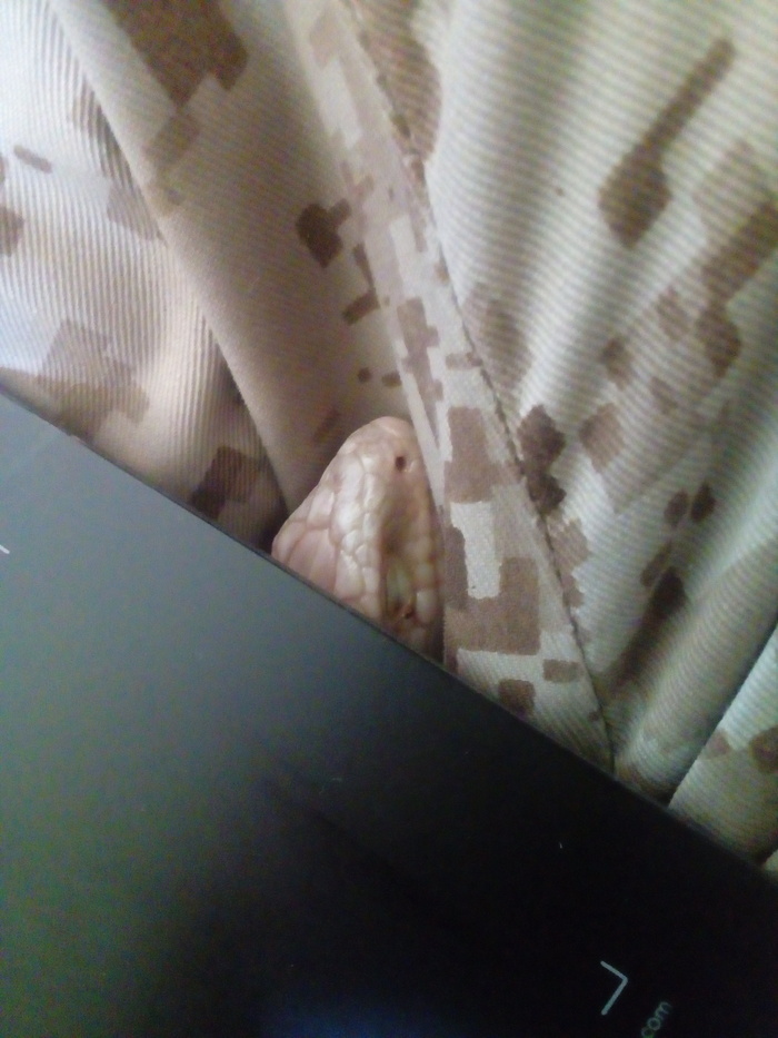 Нео любит спать в ногах, свесив голову. Террариум его, видите ли, не устраивает.