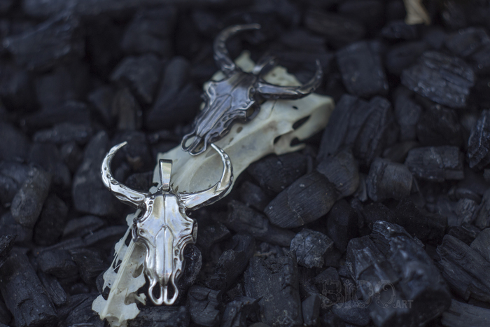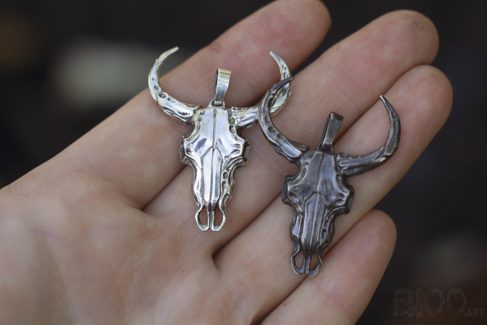 23 BiooArt 4 года назад Кулон череп коровы Серебряный кулон коровий череп. Вариации с чернением и без. Создан методом литья из серебра по выплавляемым моделям.Высота кулона 42 мм, 33 мм от рога до рога. Показать полностью 5 [моё] Череп Литье металла Длиннопост Ещё 0