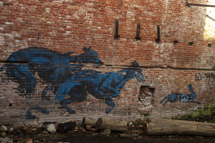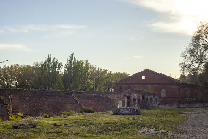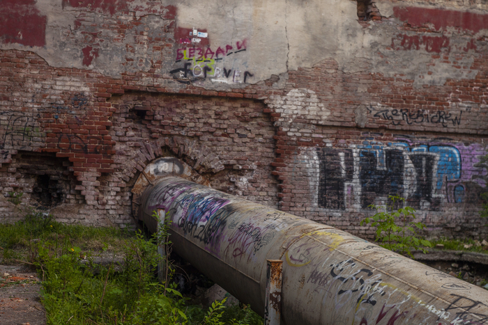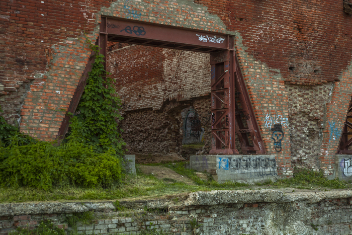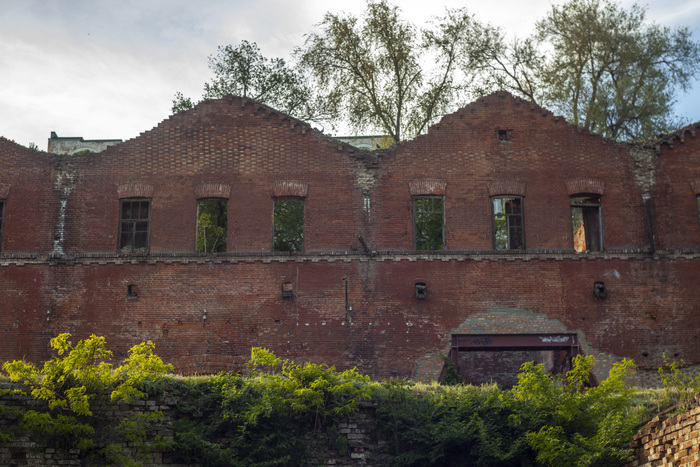 Набрели на эту знаменитую заброшку совершенно случайно, лезли через лютый забор и окно, хотя в 15 метрах оказался прелестный проход. Красиво - если вы любите уснувшую кирпичную романтику. Масштабно.
