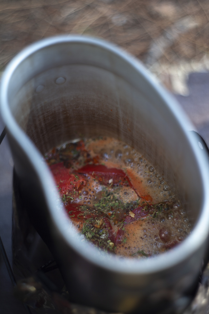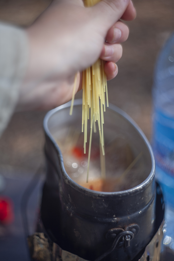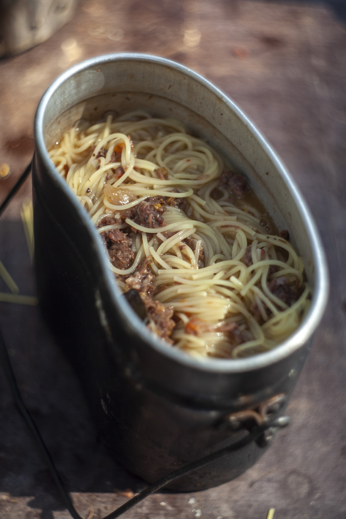 Немного о походной кухне) Макарошки с тушней излюбленная еда походников. И если есть желание немного заморочиться - вот простой рецепт) В котелок добавить жир из банки с тушёнкой и в нем обжарить искромсанный помидор. Добавить специй. Долить воды и в этом бульоне уже и варить макаронки, и позднее в вареные добавить измельченную тушню. Получается много вкуснее просто макарон с тушенкой и кетчупом)