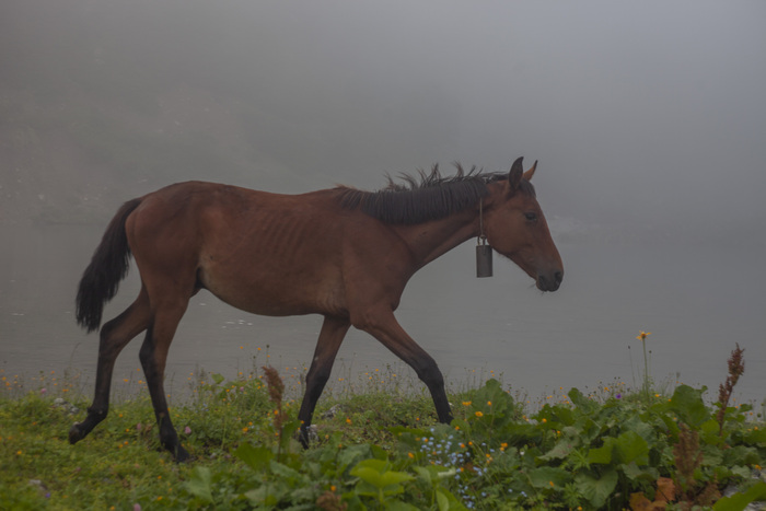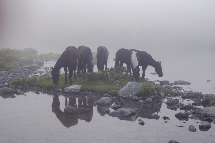 Мы устроили мини заброску на ушатанной жизнью горбушке, которая вот-вот гляди да развалится, гонимая по горной дороге. Потом шли через реки-горы к нашей стоянке. Там я впервые попробовала чай из рододендрона. Костры, купание в жидком бутылочном стекле озера, а с утра туман, сквозь который мелькали силуэты лошадей. И путь на следующее озеро - Софийское. Купаться в воде, в которой плавают льдины жгуче экстравагантно)))))