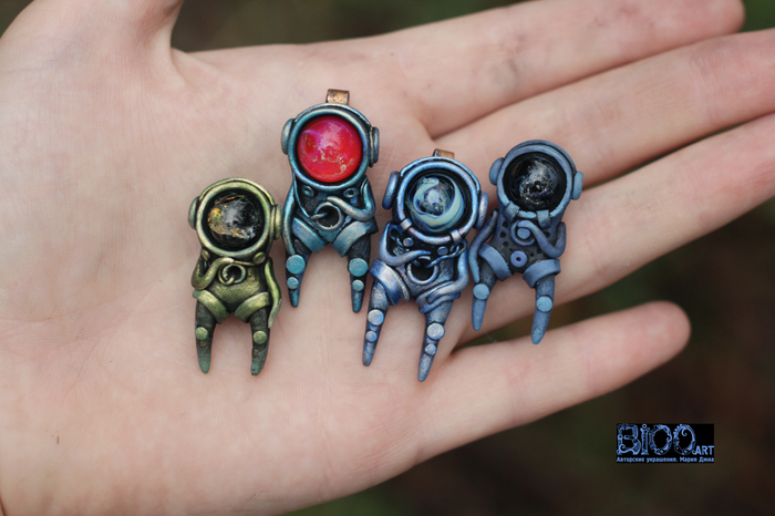 167 BiooArt 7 лет назад Странники, бродяги космических просторов. Кулоны из полимерной глины. Показать полностью 3 [моё] Космонавты Космос Кулон Полимерная глина Ручная работа Длиннопост