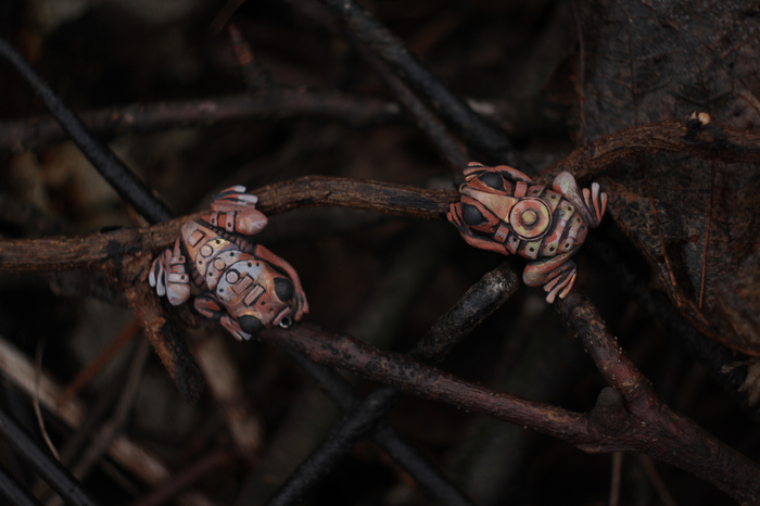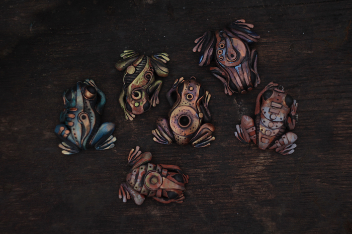 18 BiooArt 7 лет назад Лягушки-механоиды. Кулоны. Полимерная глина, пастель, акрил, лак. Размер особи 3,5-4 см. Показать полностью 6 [моё] Лягушки Жаба Кулон Полимерная глина Биомеханика Длиннопост