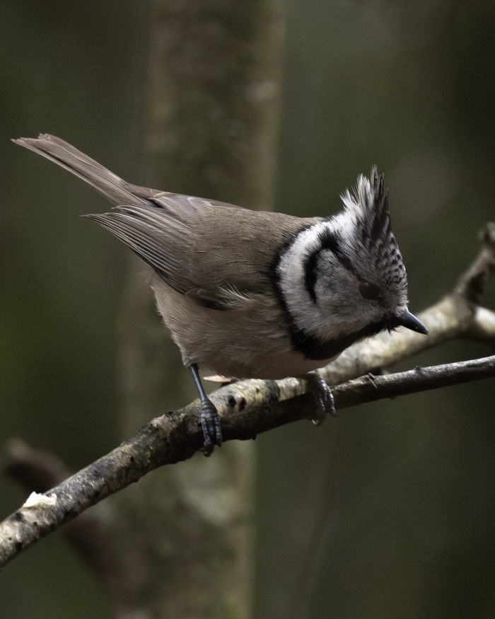 Удача тут и правда сыграла свою роль, ведь хохлатая синица не то чтобы пугливая, но посещает их редко и с осторожностью относится к людям.