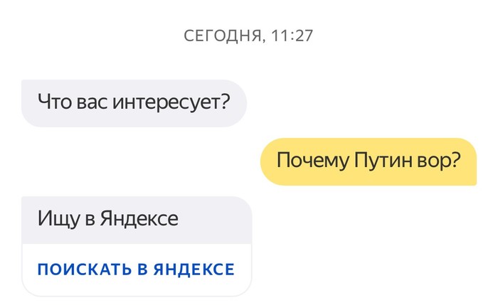 У голосового помощника от «Яндекса» спросили, почему «Путин — вор». «Алиса» подробно ответила