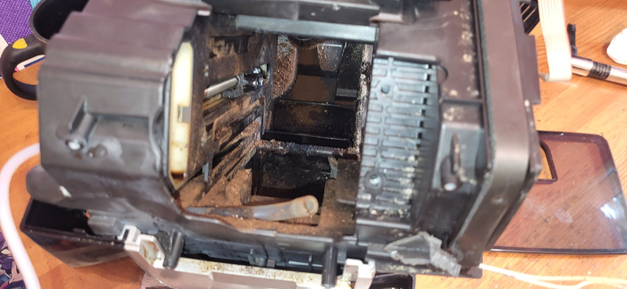 Она долгое время стояла в офисе и никем не обслуживалась, внутри все поросло плесенью, а в баке был налет ржавчины (это я сфотографировать забыл).