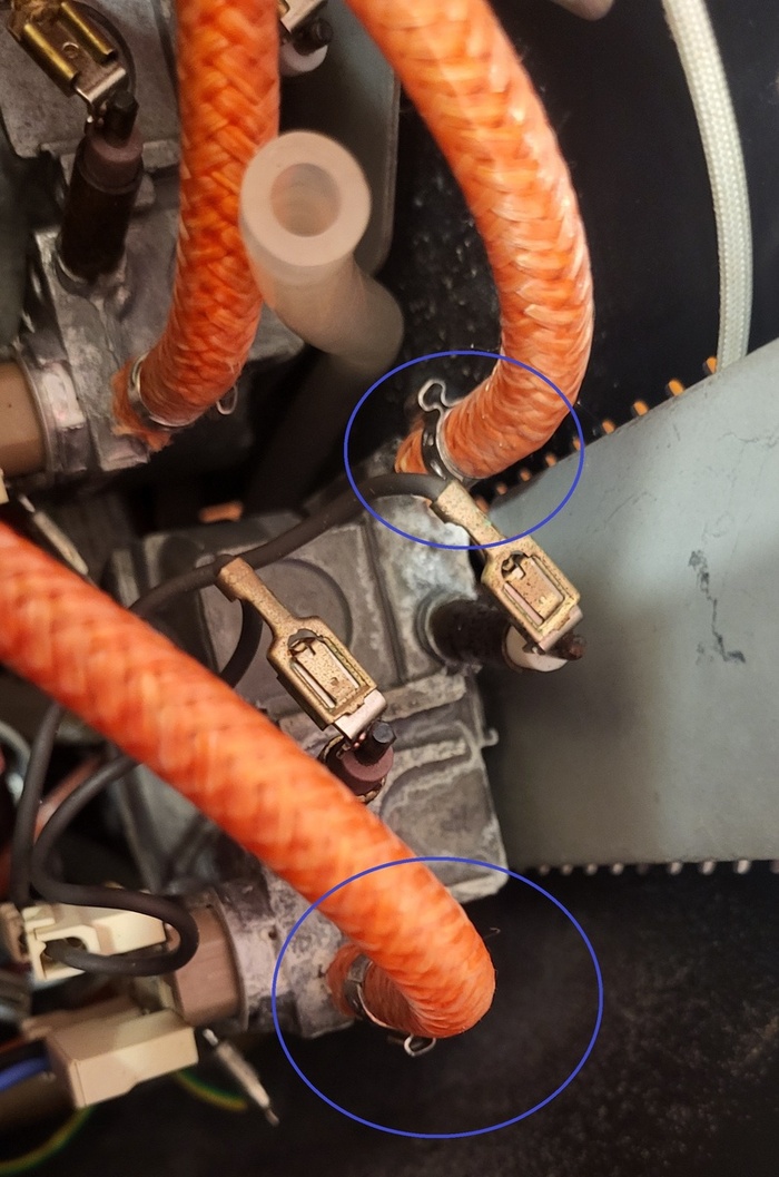 Но и это еще не все, у нас же проблема основная с кофемолкой, что же там? А для полной диагностики нужно сначала поменять бойлер. Меняю бойлер, берем дорогущие новые шланги Saесo, так как старые подтекали, и подключаем все как надо. От перегрева разрушились пластиковые кожухи линии 220. Ничего страшного, я ставлю новые.