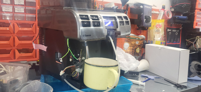 Но я отвлекся. Клиент обратился с жалобой, с тачкой творится неладное: не мелет кофе, кофе в заварник тоже не попадает, в общем кофе делать отказывается. Отдавали ранее местному мастеру с поломкой, вроде как не работала вообще, заработала, потом вот кофемолка забарахлила, отдали тому же мастеру, она немного поработала и померла окончательна. Отдавать ее еще раз местному мастеру клиент уже не хочет.