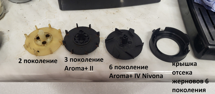 Особо не меняя конструкцию кофемолки в нее ставят новую крыльчатку и жернова другой геометрии, Aroma+ I поколения. Крыльчатка цельная, вместо пружинок с шариками на ней просто есть штырьки.