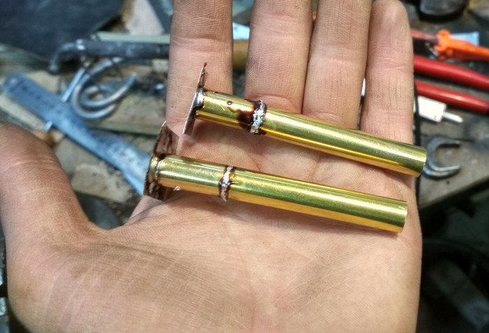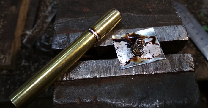 Далее нагреваем этот брусочек в пламени горелки и он приобретает уже красивый внешний вид.