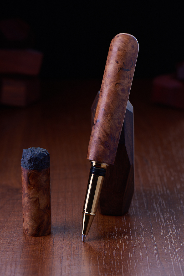 Хой, Пикабушники. Давно уже занимаемся с напарником изготовлением пишущих ручек с применением редких и уникальных материалов. Не так давно открыли для себя титановый дамаск - тимаскус. Очень тяжело обрабатываемый, но от этого конечный результат только приятнее выглядит.