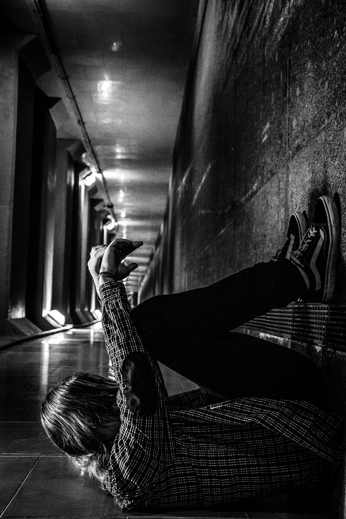 Планы на съемку кардинально изменились из-за дождя, настигшего нас посреди улицы. Мы забежали в ближайший подземный тоннель, чтобы укрыться от непогоды, и смогли сделать серию из данных снимков.