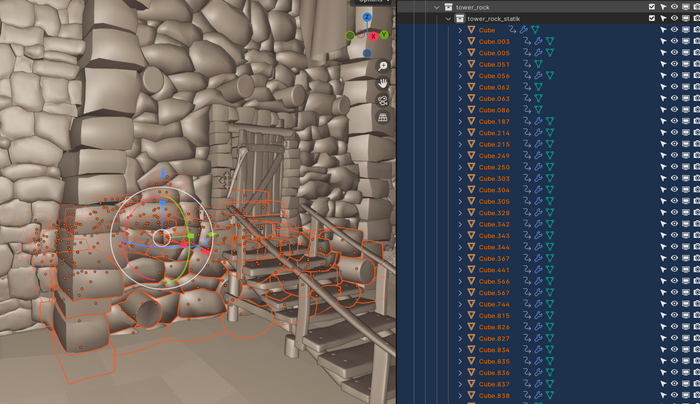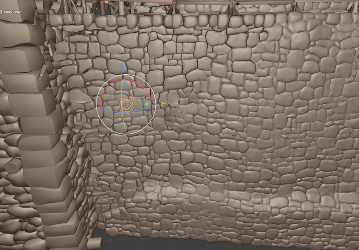 Заранее подготовим стационарные не разрушаемые части соединенных с башней стен. Для этого смоделируем обрушенную частично кладку. В моем случае я просто экструдировал грани камней где хотел, чтобы прошел раскол, разделять надо конечно между камнями.