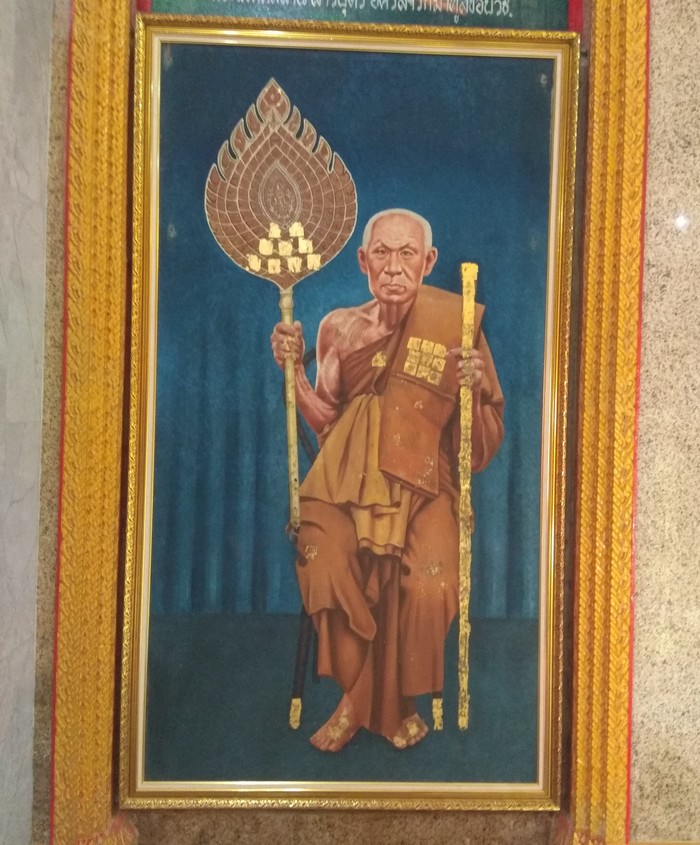 Здание Чеди Пхра Махатхат (Phra Mahathat Chedi. На первых двух этажах статуи Будды и фото монахов, на третьем прах.
