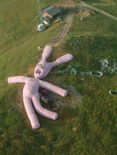 В 2005 году группа художников в Италии создала гигантского, около 60 м в длину и 6 м в высоту, плюшевого кролика в сельской местности. Эта хрень лежит там до сих пор