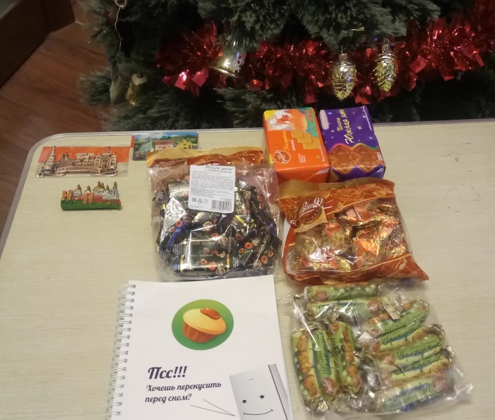 Очень вкусные конфеты и печенье, красивые магниты, которые сразу заняли место на холодильнике ))) А от жены отдельное огромное спасибо за тетрадь для рецептов!!!!