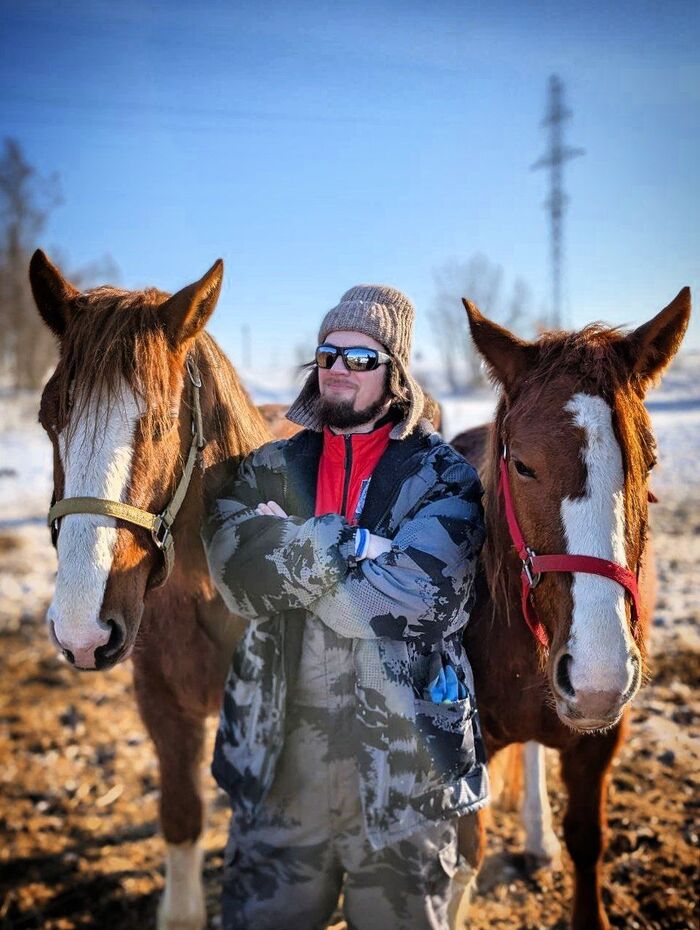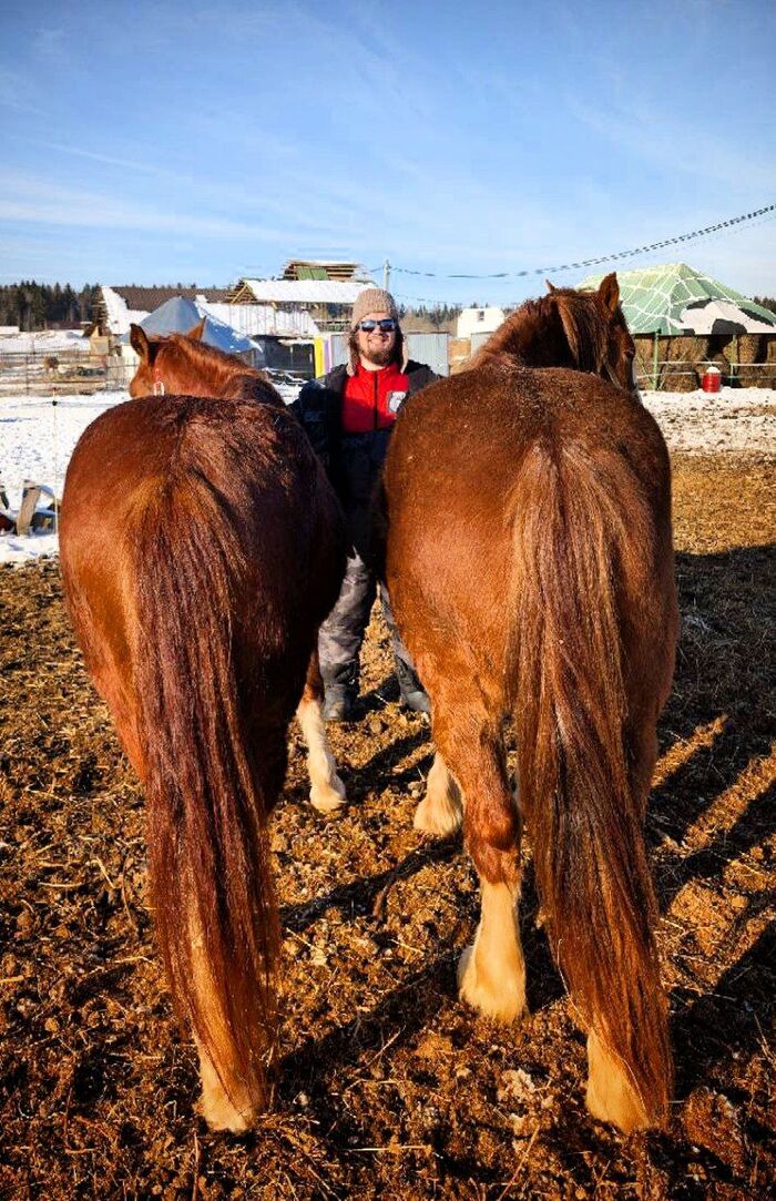 Гав (слева) - породистый владимирский тяжеловоз, с паспортом ВНИИК (институт коневодства), а Мурчик (справа) беспородная помесь енота с носорогом, хотя обещали тяжа с рысаком.