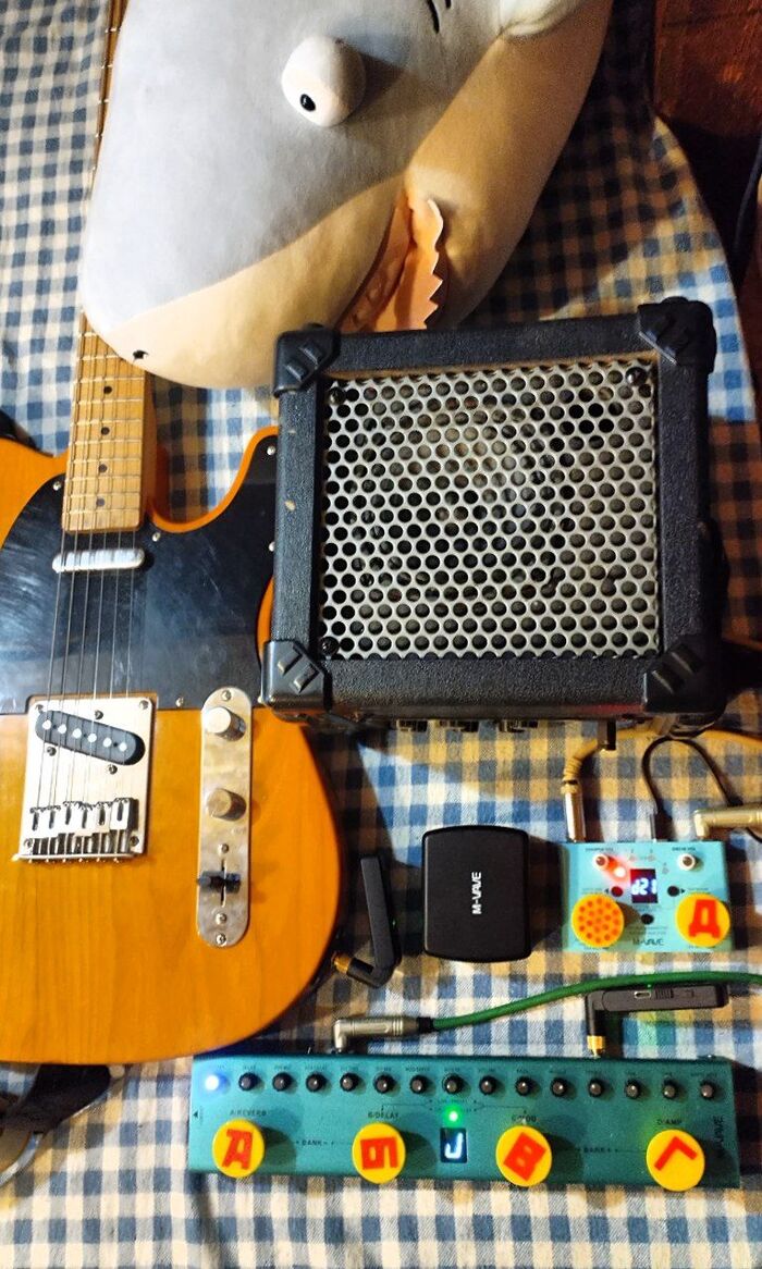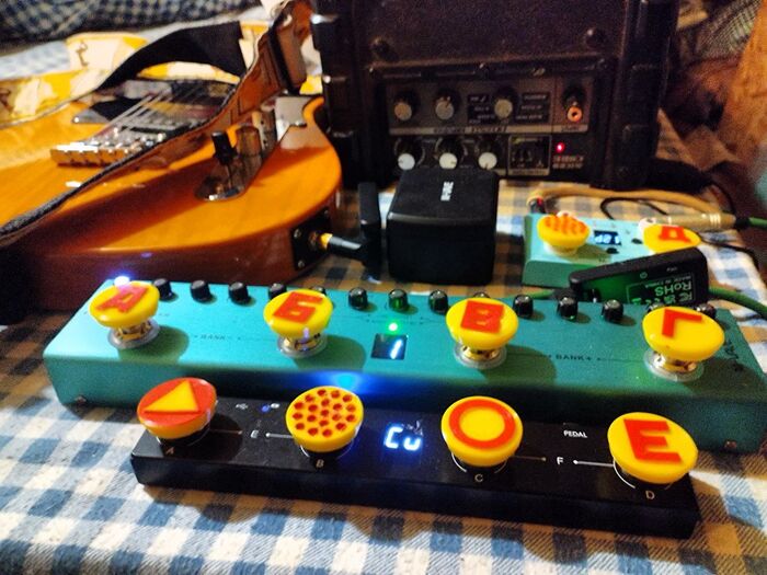 - цепочку эффектов M-VAVE tank g со всеми современными цифровыми штуками, он даже как блютуз колонка может 😂 самый прикол этой коробочки в том, что можно загрузить цифровой слепок реального гитарного усилителя и педалей, и цифровой слепок колонки ( ir, кабинет). По итогу подключаешь коробочку в телефону, качаешь приложение и там естб свой плеймаркет слепков сделанных пользователями. Очень удобно.