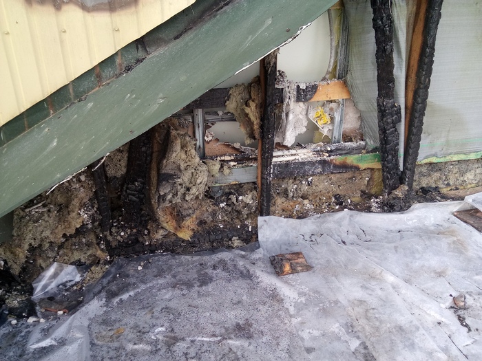 Например вот. При пожаре дома пристроенного вплотную образовался прогар в стене каркасной надстройки и пожар ушел внутрь