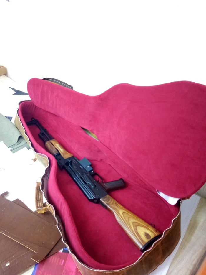 Есть один минус - гитары у меня нету. Но есть карабин, выпущенный в 1970г под гордым именем АКМ. Правда после жизнь его покидала с ним случилось некоторое дерьмо, ну да это не тема поста про чехол. В общем изделие получается двойного назначения.