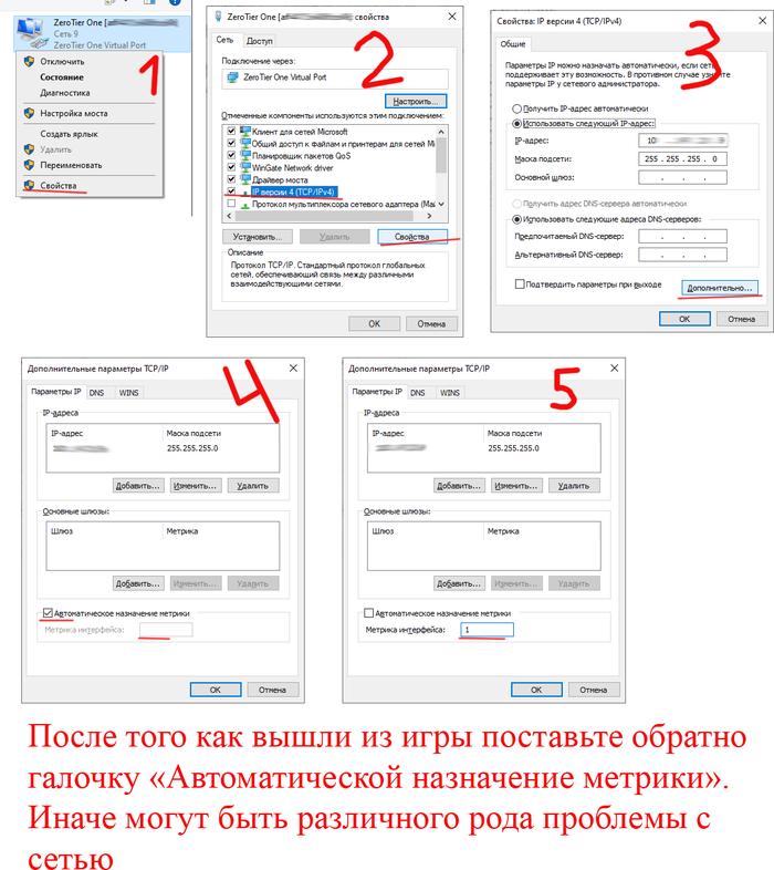 // В данной инструкции для поднятия локалки я использую ZeroTier One, но по идее должна подойти любая софтина которая объединяет компы в одну сеть. Главное чтобы там была поддержка броадкаста, и нужно заставить игру работать именно через поднятое подключение. Для чего в данном случае устанавливается значение метрики //