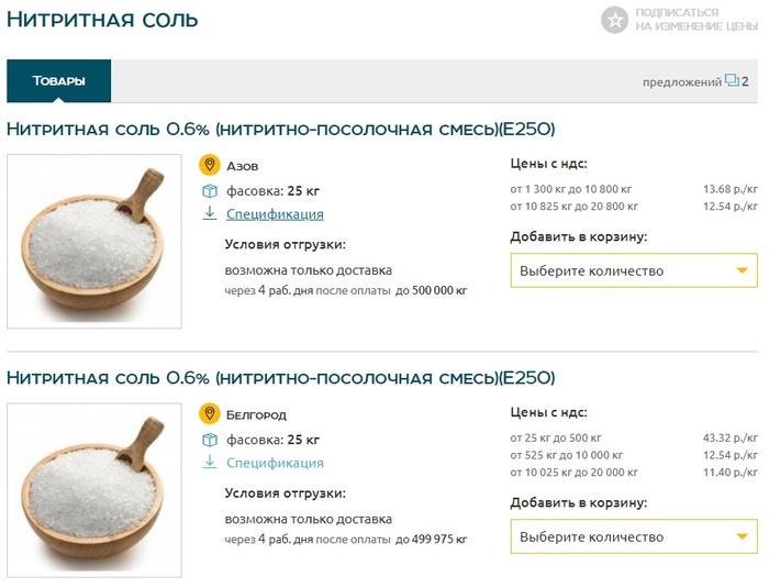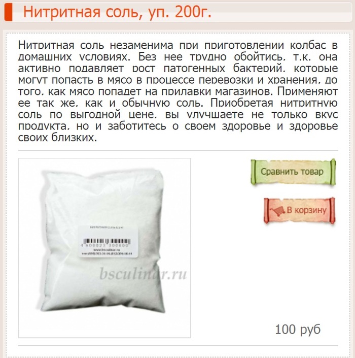 Оказывается расфасованная в пакетики по 200 грамм нитритная соль уже стоит ни много ни мало, а 100 рублей. А значит килограмм уже получается не 43, не 50 и даже не 100 рублей, что я еще понял бы. Цена выходит 500 рублей. Сейчас будет мем.