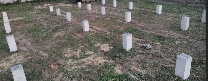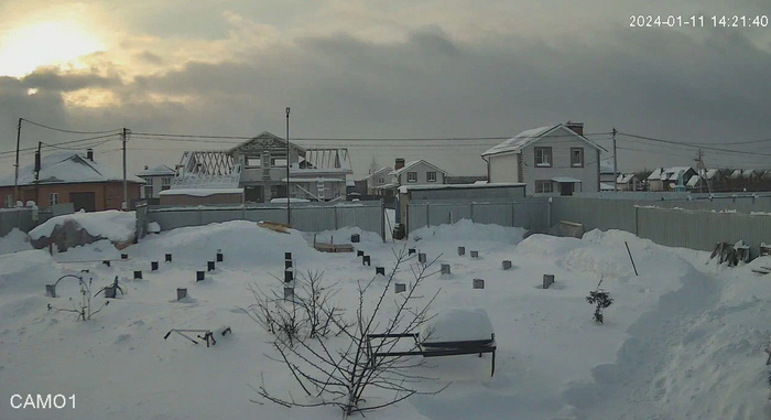 К 2023 году подкопили денежек и решили построить домик. Домик каркасный (газик подорожал непомерно), 1.5 этажа. 12х7.5м. На забивных ЖБ сваях.
