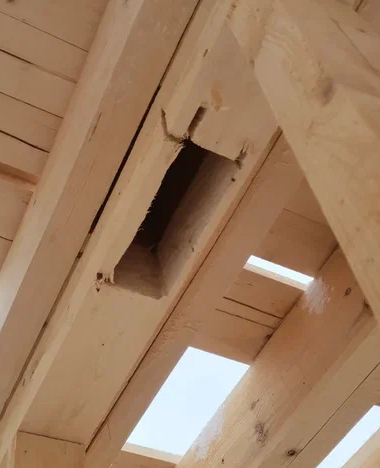 2. Прое...анное окно, укосины не проектные, стык лежня ровно над стыком лобовой доски перекрытия. Как будут 2 этаж исправлять - не знаю, жду прораба: