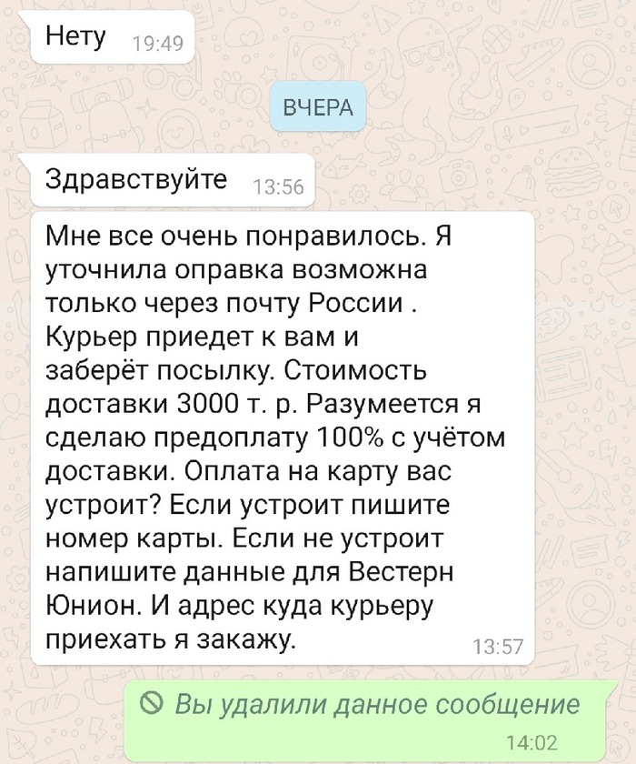 "Бла бла бла, я Виктория Батьковна, с вашей карты совершён подозрительный перевод на сумму 2000 рублей"