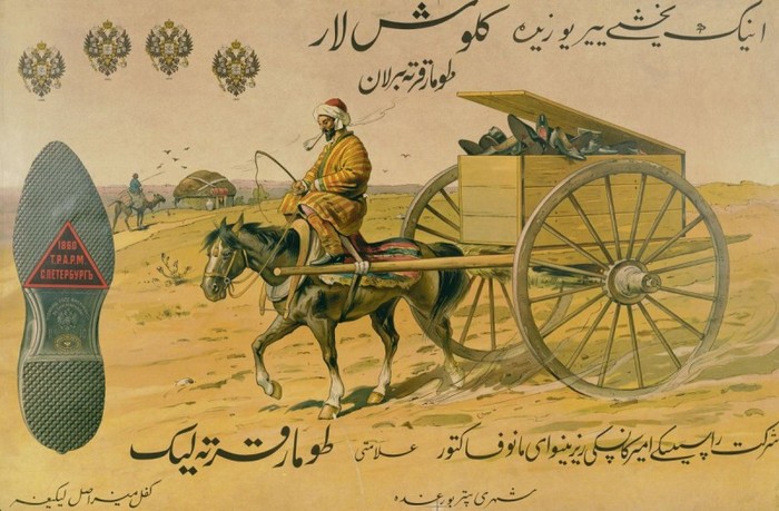 А вот в Африку галош СССР не поставлял. Поставляла ли в Африку галоши большая тройка заводов резиновой промышленности Российской империи неизвестно. Но зато глядя на рекламные плакаты того времени, можно предположить, чем именно вдохновлялись спичрайтеры президента. Только опять — как это часто у них случается — немного перепутали государства, Российскую империю с СССР.