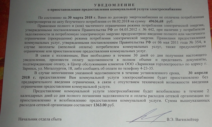 Расскажу историю снова. Был поврежден счетчиквот как-то так: