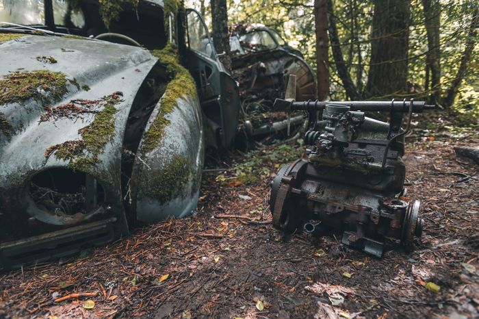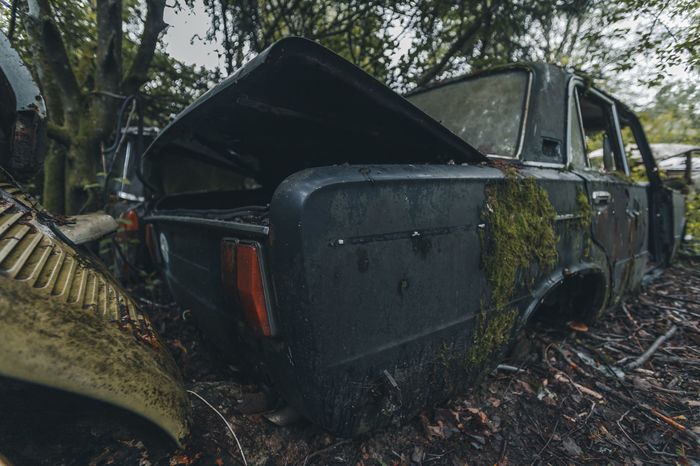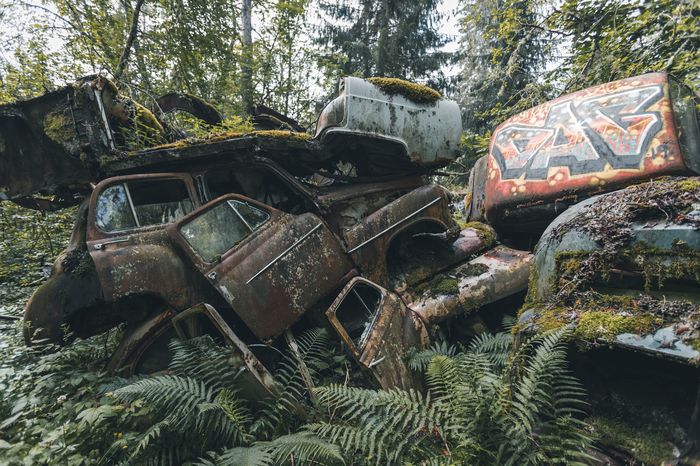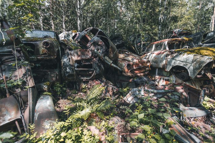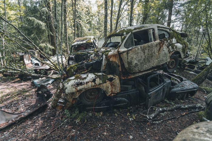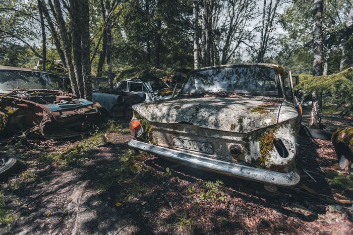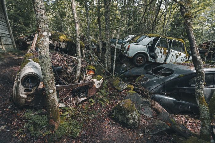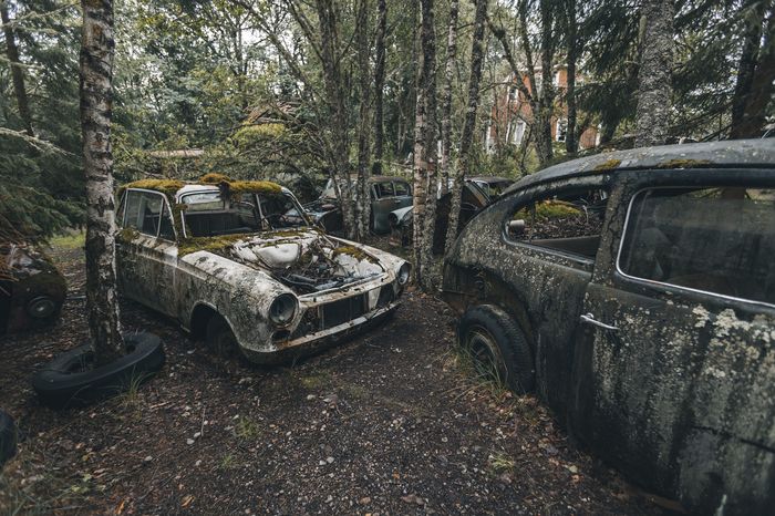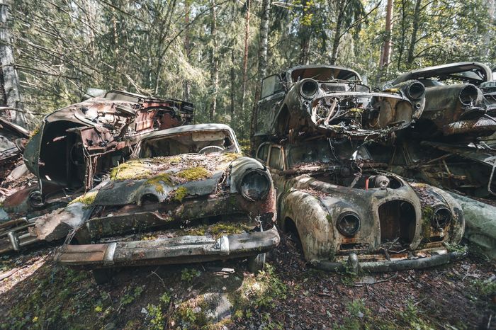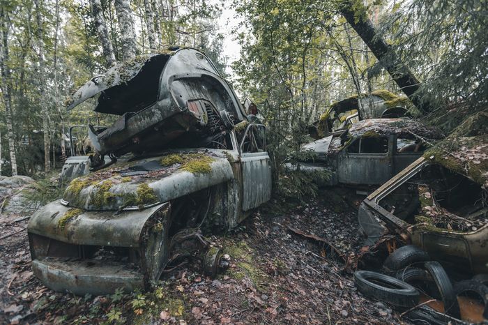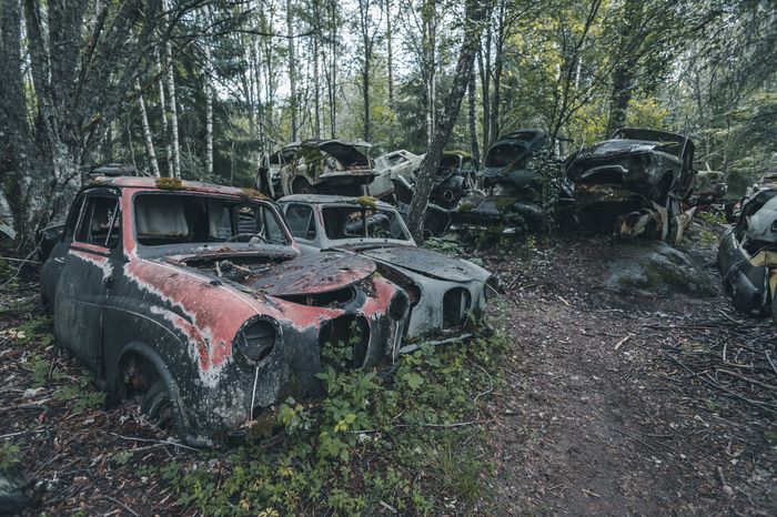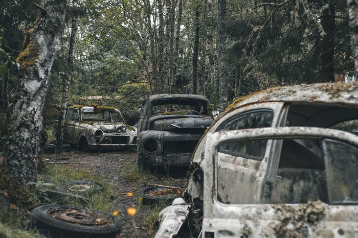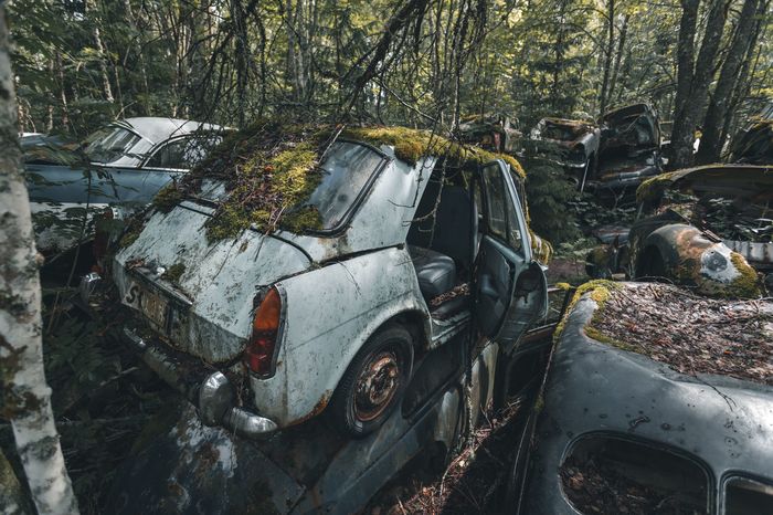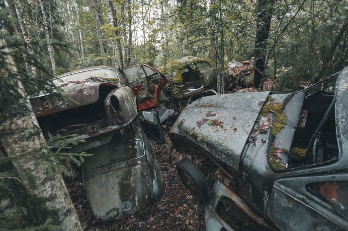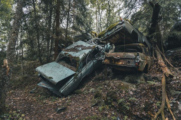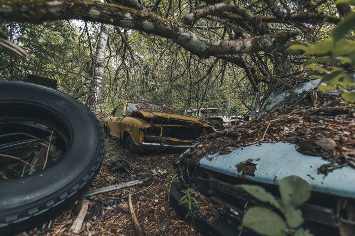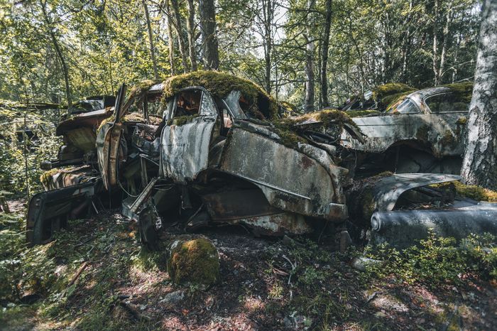 Заброшенные ретро-автомобили в лесу Швеции